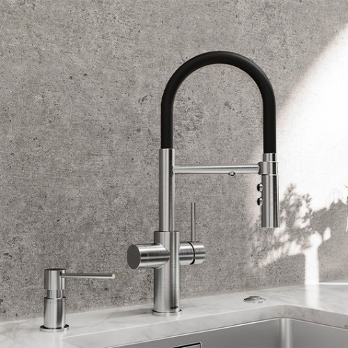 Компактность и практичность: с смесителем 2-в-1 не надо делать дополнительное отверстие для подачи фильтрованной воды