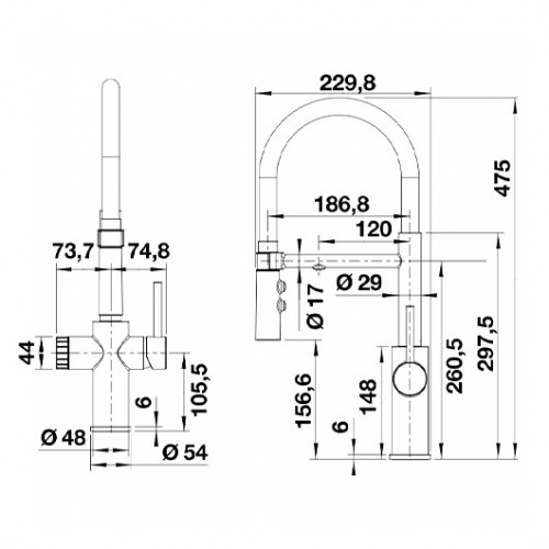 Гигиеничный: отдельный излив с дополнительным носиком для фильтрованной воды - нет смешивания с водопроводной водой