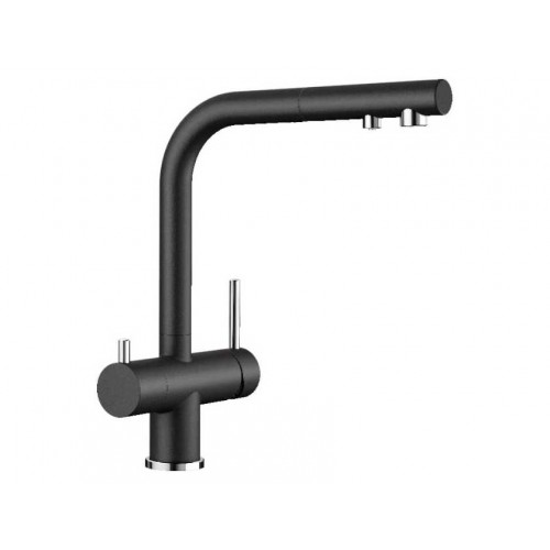 Как и у всех смесителей BLANCO для подключения фильтра в новинке предусмотрены два отдельных рычага для управления подачей питьевой и водопроводной воды, для холодной и горячей - справа и для фильтрованной - слева. В новом смесителе, как и в прежних версиях, питьевая и водопроводная вода подаются по разным шлангам и выводятся через разные изливы, обеспечивая гигиеничность.