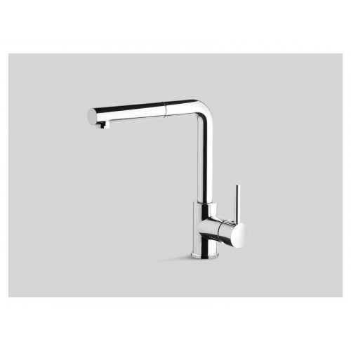 Однорычажный смеситель для мойки с прямоугольным поворотным изливом и выдвжным душем.