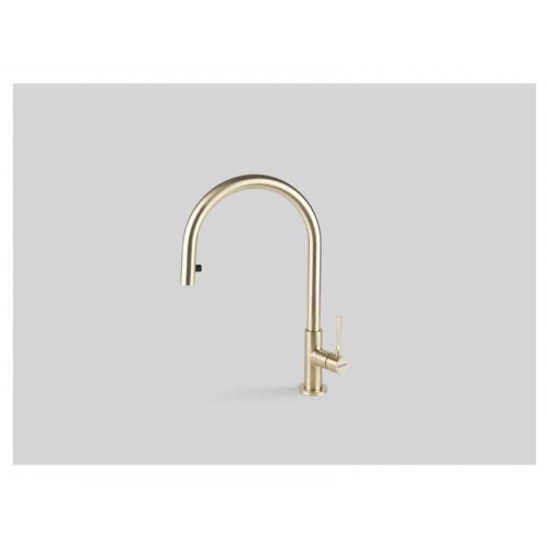 Описание Однорычажный смеситель для мойки с поворотным и регулируемым изливом. Соединительные шланги с внутренней резьбой 3/8 дюйма Отделка золото Диаметр выреза 35 мм