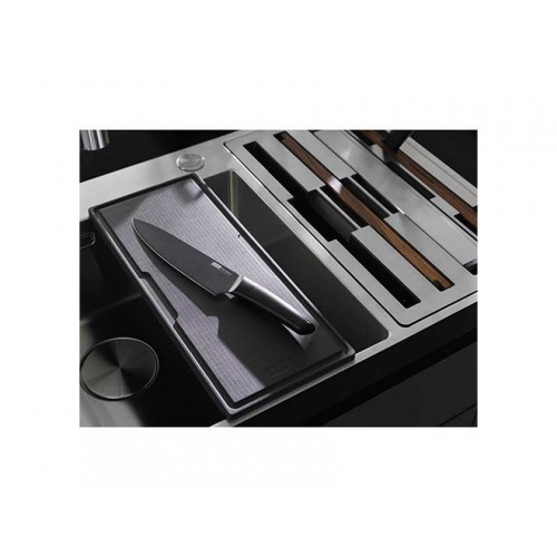 Описание В хорошо организованной кухне каждое движение эффективно. Благодаря кухонной мойке Box Center самые важные кухонные принадлежности становятся её частью, аккуратно хранятся в отделение справа или слева − прямо там, где они вам понадобятся для приготовления. Уникальная многофункциональность в самом центре Вашей кухни!  дополнительное рабочее пространство, гигиена и чистота идеальная интеграция - стандартные размеры 86 х 51 см, запатентованная система крепления Fast Fix и возможность двойной установки (сверху или вровень со столешницей) декоративная круглая накладка на выпуск как элемент дизайна инновационная механическая система пневматического открывания и закрывания слива воды из мойки полный комплект аксессуаров (входит в стоимость): 2 разделочные доски, миска из нержавеющей стали, 3 ножа (для хлеба, овощей, мяса/рыбы), держатель-подставка для ножей Модель удостоена сразу двух наград IF Design Award и премии Kitcheninnovation Award в 2019 году за дизайн и высокую функциональность. Диаметр выпуска 3 1/2'' Расположение малой чаши Справа Ширина шкафа 900.00 mm Длина 860.00 mm Ширина 510.00 mm Длина чаши 540.00 mm Ширина чаши 410.00 mm Глубина чаша 200.00 mm Страна производитель: Италии