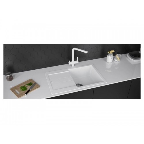 Мойки из α-Granit изготовлена из композитного материала последнего поколения. Они легко чистятся, гигиеничны и обладают высокой учтойчивостью к царапинам, химическим вещетвам, а также к температурам до 280грС и термическим ударам.