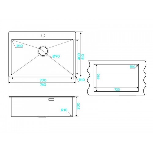 Описание Мойка  изготовлена из нержавеющей стали, обладающей высокой коррозийной стойкостью, большим запасом механической прочности, а также устойчивостью к воздействию кислот и других химически активных соединений. Устойчива к термическим воздействиям. Устойчива к образованию ржавчины. Не задерживает загрязнения на поверхности. Безопасна для здоровья. Легка в уходе и чистке. Материал - Нержавеюща сталь AISI304  Мебельная база - 80 см Тип монтажа - Врезной Размер мойки- 740х510 мм Размер чаши - 700х400 мм Глубина чаши - 200 мм Радиус - R-10 Метод производства - сварная, ручное производство Толщина материала - 1,2 мм Комплектация • Декоративная накладка на слив • Комплект крепежа • Слив + Перелив • Сифон с подключением ПММ • Гофрированный шланг слива
