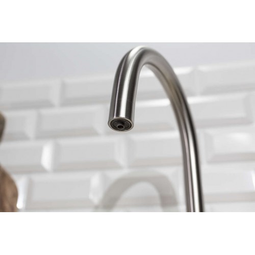 Смеситель произведен из высококачественной японской нержавеющей стали 18/8 — максимально экологичного материала для современного дома. Высокий излив обеспечивает максимально удобное использование смесителя. Технология PURE LIFE®: подключение фильтра для очистки воды. Фильтрованная вода подается по отдельной трубке и не смешивается с водопроводной водой. Аэратор произведен из пластика, благодаря чему на нем никогда не появятся известковый налет и ржавчина. Полный набор креплений, соединительных шлангов, подробная инструкция и гарантийный талон — в комплекте. Подводка: гибкая, в оплетке из нержавеющей стали, полный комплект соединений для подключения Картридж керамический 35мм