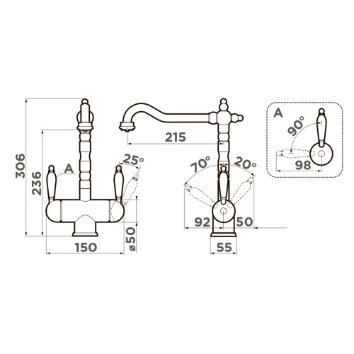 Классический дизайн и удобство использования благодаря высокому изливу.