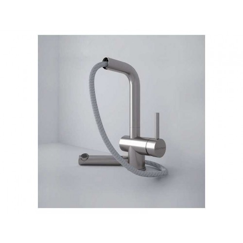 Конструкция смесителя с вытяжным шлангом значительно облегчает процесс мойки посуды или продуктов любого размера и формы.