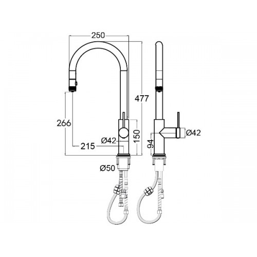 ● Высота смесителя: 477 мм