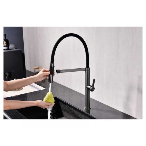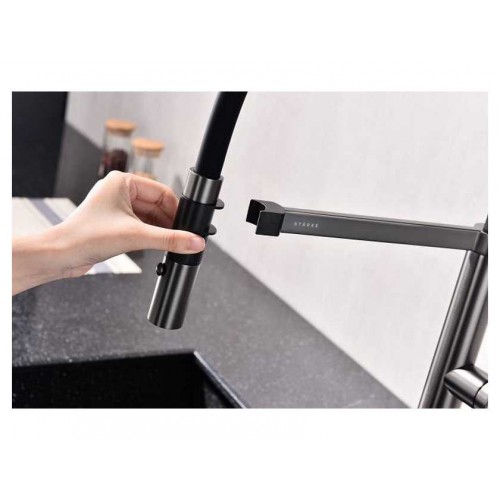 Смеситель LEADER имеет два режима подачи воды: мощная струя и деликатный душ. Переключение режимов осуществляется с помощью удобной и эргономично расположенной кнопки. Высокий излив с функцией вращения на 360 градусов обеспечивает удобство использования. Высота излива делает смеситель идеальным решением для ваз и высокой посуды, а его необычный стиль позволяет воплотить самые смелые дизайнерские идеи на вашей кухне.