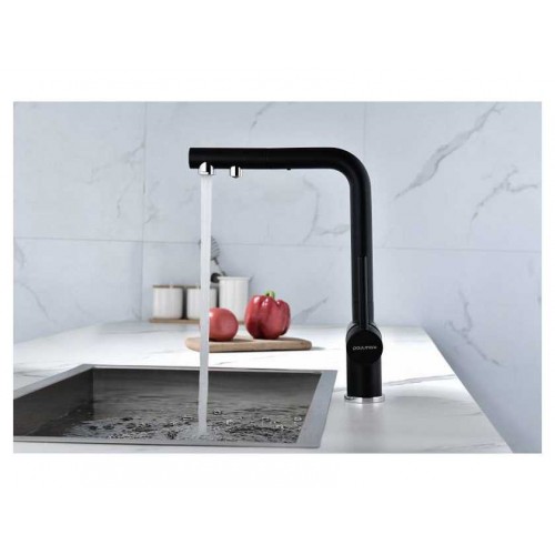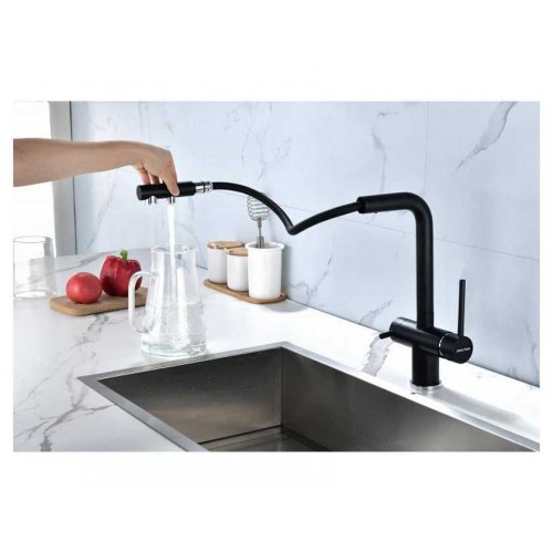 Удобный смеситель 3-в-1: фильтрованная и обычная вода из выдвижного излива.