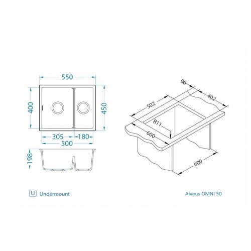 Новая коллекция OMNI от ALVEUS - это универсальное решение для современной кухни. Два варианта монтажа - классический врезной и подстольный. Два крепежа для двух способов крепления в комплекте. Четкие грани, скрытый в чаше перелив. 5 лет заводской гарантии.