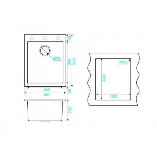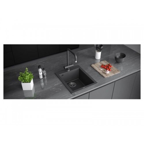 Описание Мойки из  a-Granitа  изготовлена из композитного материала последнего поколения. Они легко чистятся, гигиеничны и обладают высокой учтойчивостью к царапинам, химическим вещетвам, а также к температурам до 280грС и термическим ударам. Новый композитный материал не только прочен, но и приятен на ощупь, благодаря своей шелковистой поверхности. Материал -  α-Granit Мебельная база - 45 см Тип монтажа - Врезной Размер мойки - 410х500х200мм Размер чаши - 340х395х200мм Метод производства - PMMA-литье, горячая полимеризация Толщина материала - 10 мм Комплектация • Комплект крепежа  • Слив + Перелив • Сифон с подключением ПММ • Гофрированный шланг слива