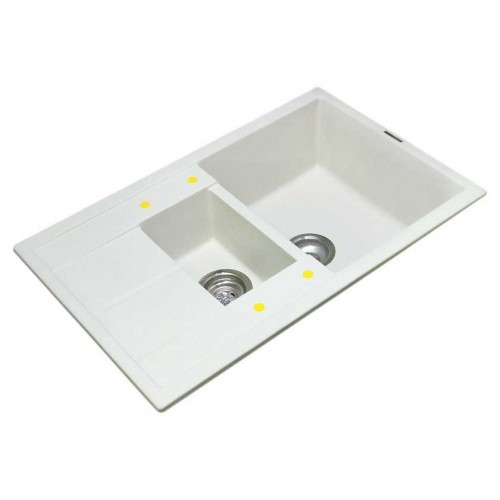Полноразмерная гранитная мойка D.4 интересного дизайна с глубокими чашами и компактным крылом непременно станет настоящим украшением вашей кухни. Имеется 4 намеченных отверстия под смеситель, дистанционный слив, кран для питьевой воды и/или дозатор мыла.Прочный металлический крепеж, установленный на мойке, обеспечивает надежную её фиксацию в столешнице. Минимальная толщина стенок мойки - 8 мм. Мойка укомплектована сливной арматурой. Для заказа доступны все цвета.