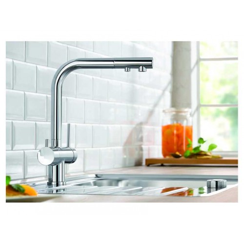 Описание Смеситель Blanco Fontas объединяет сразу две функции - питьевая и обычная вода из одного смесителя. Высокий излив обладает двойной функциональностью, питьевая вода не смешивается с обычной и подается из отдельного отверстия. Смесителем удобно пользоваться , так как он имеет два отдельных рычага управления для водопроводной и фильтрованной воды соответственно. Излив смесителя вращается на 360 градусов, что позволяет направить поток воды в наиболее удобное место. Высота: 300 мм Высота излива: 267 мм Длина излива: 170-205 мм Вращиющийся излив Запатентованный рассекатель, уменьшающий отложения налета от воды Стабилизирующая пластина для увеличения устойчивости смесителя