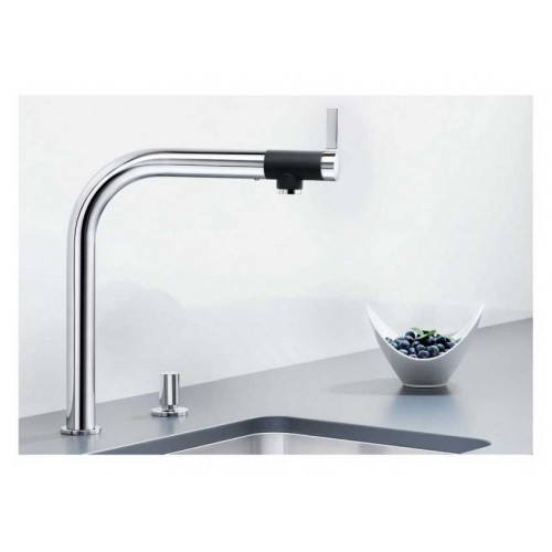 Описание BLANCO VONDA поверхность "нержавеющая сталь" смеситель, Кухонный смеситель Vonda из нержавеющей стали в сочетании с функциональной мойкой обеспечивает максимальный комфорт и удобство эксплуатации. Эргономичность и минимализм исполнения прекрасно подойдут для современных кухонных интерьеров. Модель подходит для комбинирования с мойками для монтажа под столешницу. На носике смесителя с черной противоскользящей поверхностью расположен эргономичный и удобный рычаг управления. Благодаря высокому поворотному изливу, расширяющему рабочую зону, можно легко наполнять водой большие емкости.• Высота: 36,7 см • Высота излива: 27,2 мм