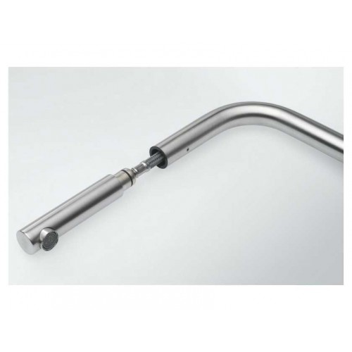 Описание Однорычажный смеситель с выдвижным шлангом и поворотным изливом. Монтаж под окно.   Корпус и лейка изготовлены из массива нержавеющей стали AISI 304  Угол поворота излива 180°, керамический дисковый картридж  Ламинарный поток воды - мягкий поток без разбрызгивания без пульсаций, пузырьков воздуха и смены давления предотвращает брызги. Тип Однорычажный смеситель Картридж керамические диски Ø 35 Угол вращения 180 ° Высота 297.00 mm Исполнение Выдвижной излив Картридж керамические диски Ø 35 Положение рычага Side Lever Тип ручки Управление сбоку Гибкие соединительные шланги удлиненные 450 мм Страна производства: Германия.