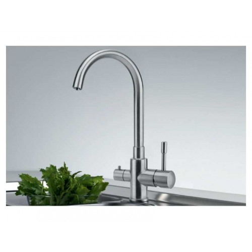 Описание Franke EOS Clear Water подойдет для тех, кто ценит европейское качество, надежность эксплуатации и использование современных технологий, а также для всех, кто следит за своим здоровьем и заботится о качестве питьевой воды. Функциональность. В конструкции смесителя имеется дополнительный канал для подачи питьевой воды, очищенной от извести, хлора и других вредных примесей. Таким образом, фильтрованная и неочищенная вода подаются отдельно. Надежность. Благодаря корпусу из нержавеющей стали AISI 304, смеситель надежно защищена от ржавчины, а наличие аэратора не дает образоваться известковому налету. Удобство и практичность. Franke EOS Clear Water имеет небольшие размеры: высота излива составляет 244 мм,а  длина составляет 185 мм. Смеситель с легкостью подключается с помощью шлангов длиной 550 мм. Устойчивость обеспечивается стабилизирующей пластиной. Излив вращается на 360град., что в совокупности с высоким расположением обеспечивает исключительное удобство при использовании. Элегантный дизайн в модном стиле "минимализм", благодаря которому смеситель органично смотрится в любом кухонном интерьере. Высота излива: 244 мм ; Длина излива: 185 мм  Корпус из нержавеющей стали AISI 304 Керамический дисковый картридж Гибкие шланги 550 мм Набор для подсоединения фильтра входит в комплект