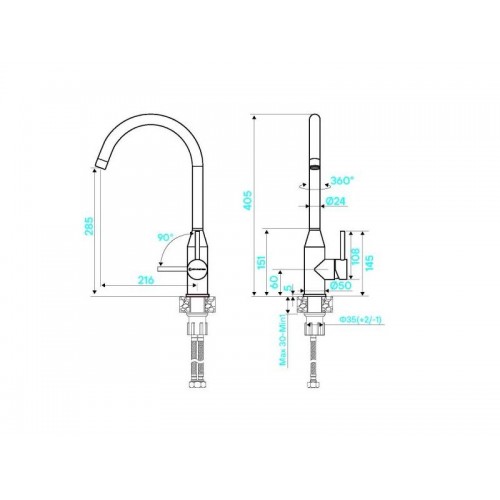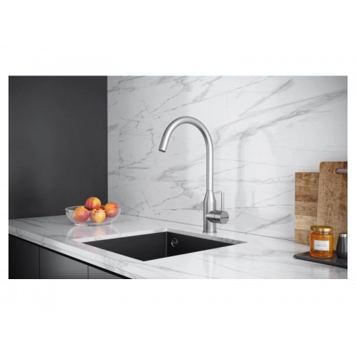 Описание Смесители из стали SUS 304 отличаются превосходной прочностью, антикоррозийной стойкостью прочностью к механическим повреждениям, устойчивостью к резким перепадам температур, абсолютной пищевой безопасностью Неоспоримым преимуществом смесителейиз стали SUS 3404 является эстетичный и современный внешний вид Цветные модели KÜCHENSTERN с PVD  покрытием обладают повышенной износостойкостью, устойчивостью к агрессивным химическим веществам, что делает их максимально долговечными Даже при интенсивном использовании покрытие PVD не тускнеет и не теряет своего привлекательного внешнего вида на протяжении многих лет В процессе PVD не используются вредные химикаты, поэтому смесители экологически безопасны. Материал: Нержавеющая сталь SUS 304 Высота: 405 мм Высота излива: 285 мм Длина излива: 216 мм Высокий излив Аэратор NEOPERL Цвет: Нержавеющая сталь SS