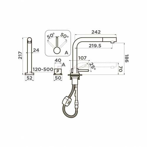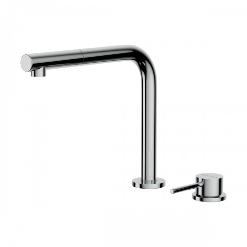 Смеситель-трансформер Nara встраивается в мойку или столешницу, освобождая пространство перед окном.  Рычаг регулировки температуры и напора воды вынесен отдельно и может быть установлен в любом месте рядом со смесителем. Диаметр отверстия для излива 35 мм, диаметр отверстия для ручки управления 35 мм Nara работает как в сложенном, так и в вытащенном виде. Вытяжной шланг до 400 мм. Высококачественная латунь без содержания свинца сохранит воду чистой и здоровой. Полный комплект соединений для подключения, инструкция, гарантийный талон. Картридж: керамический ∅35 мм Аэратор: пластик Подводка: гибкая, в оплетке из нержавеющей стали Крепление: металл