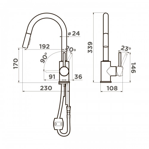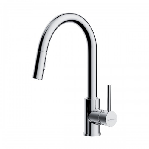 Гарантия на покрытие - 2 года; Практичный однорычажный смеситель выполнен в современном стиле и снабжен вытяжным шлангом; Кнопка переключения струя/душ. Вытяжной шланг до 400 мм. Высококачественная латунь без содержания свинца сохранит воду чистой и здоровой. Картридж: керамический, ∅35 мм Аэратор: пластик Подводка: гибкая в оплетке из нержавеющей стали Крепление: металл Угол поворота ручки может отличаться в зависимости от партии.