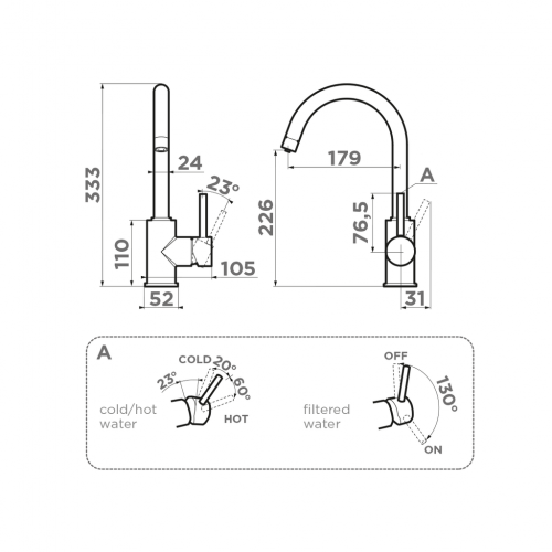 Технология PURE LIFE: подключение фильтра для очистки воды. Фильтрованная вода подается по отдельной трубке и не смешивается с водопроводной водой.